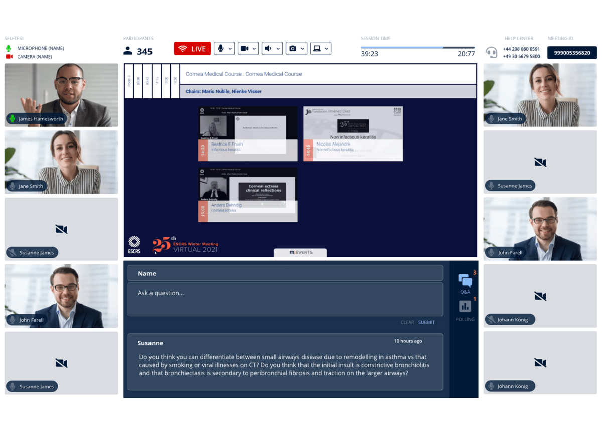 Allows on-site and remote attendees to ask questions live via mobile apps, with upvoting features to highlight the most relevant queries.