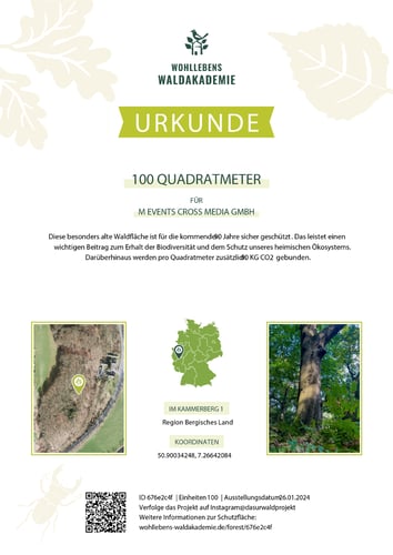 To compensate for our CO2 footprint, we support the preservation of 100 square meters of forest every month with our commitment to the primeval forest project “Buchengiganten Kammerberg”.